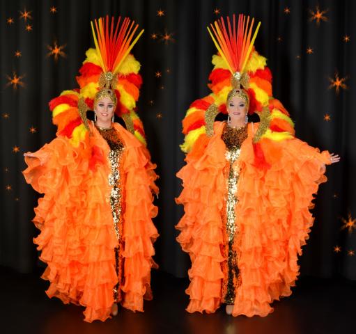 Ein Divencocktail in glamourösen Showkostümen, sowie Federn und Strass,